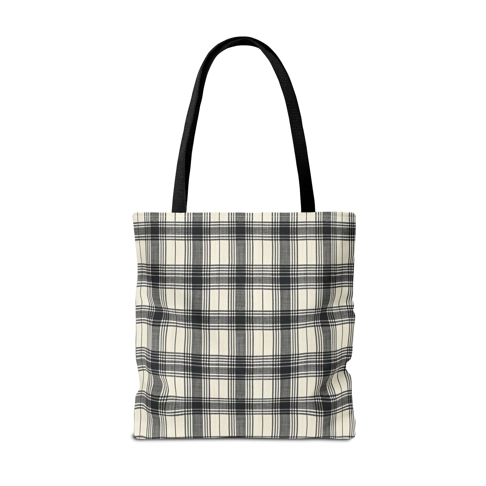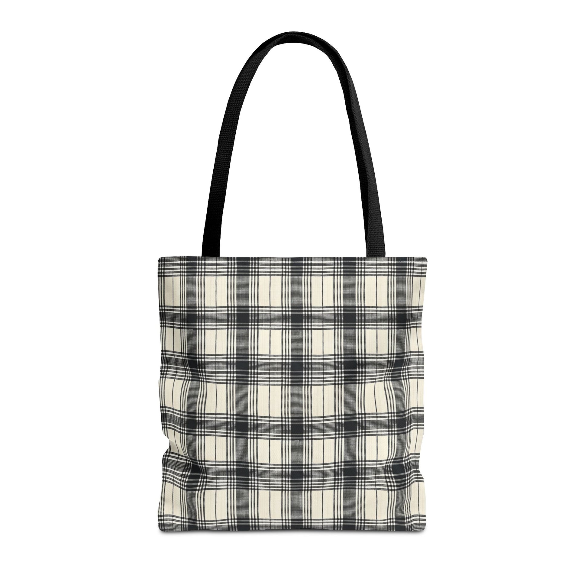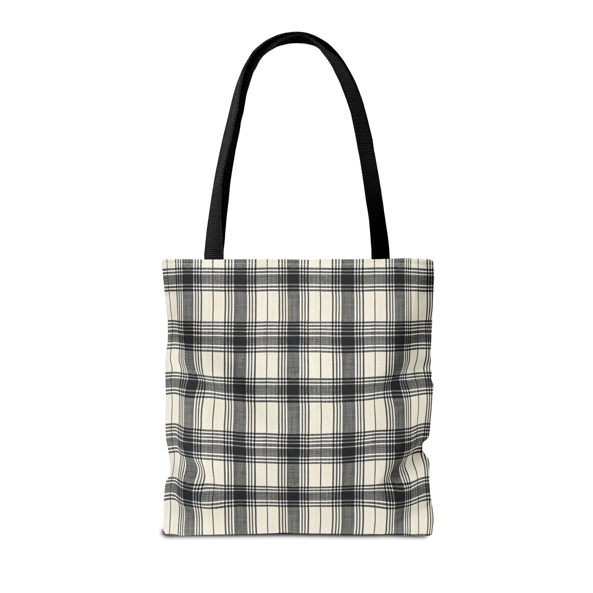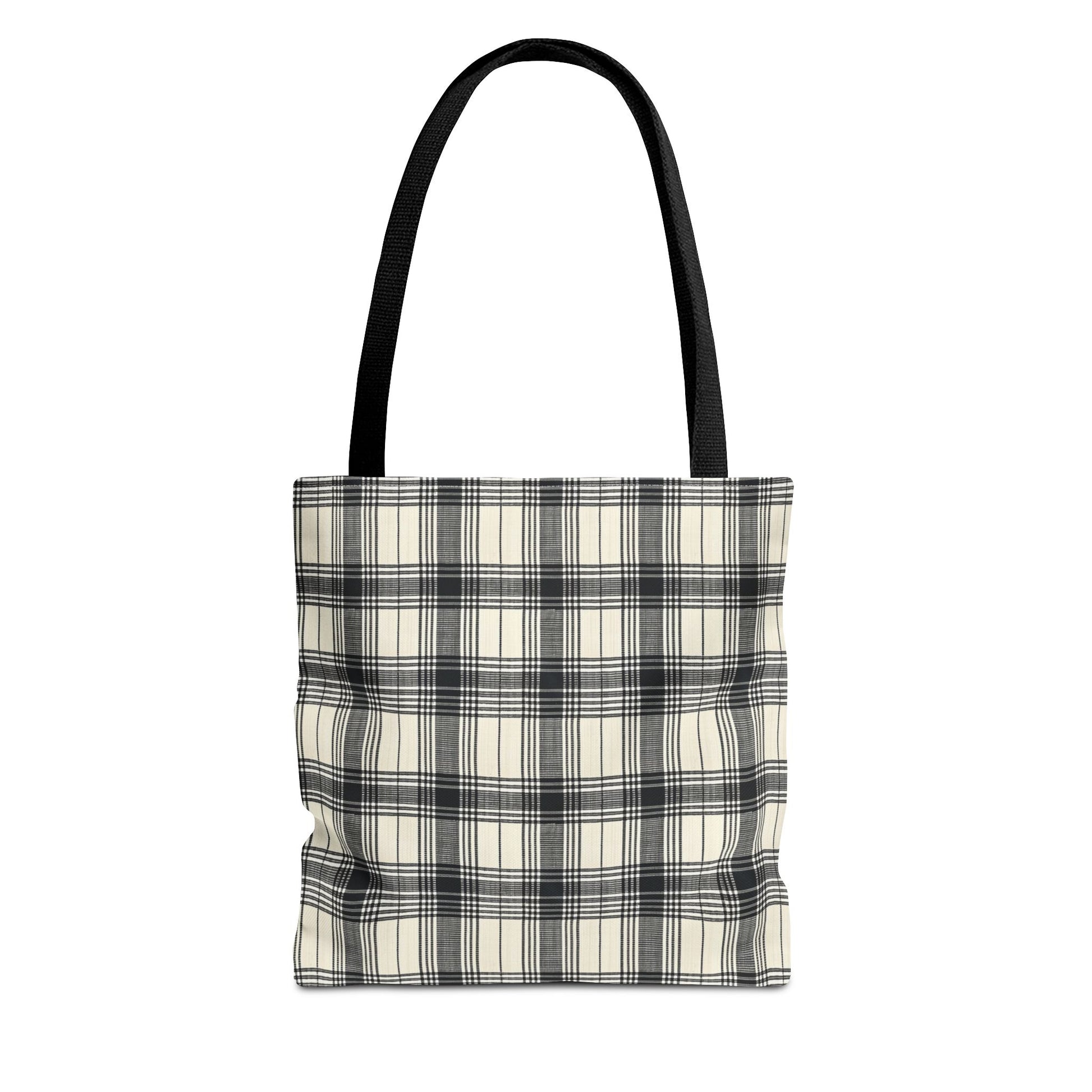 This Black and Tan Plaid Tote Bag exudes a classic and versatile vibe, perfect for everyday use. It is relevant for individuals who appreciate timeless designs and need a durable bag for various occasions. Ideal for gifting during holidays, birthdays, and special events.
