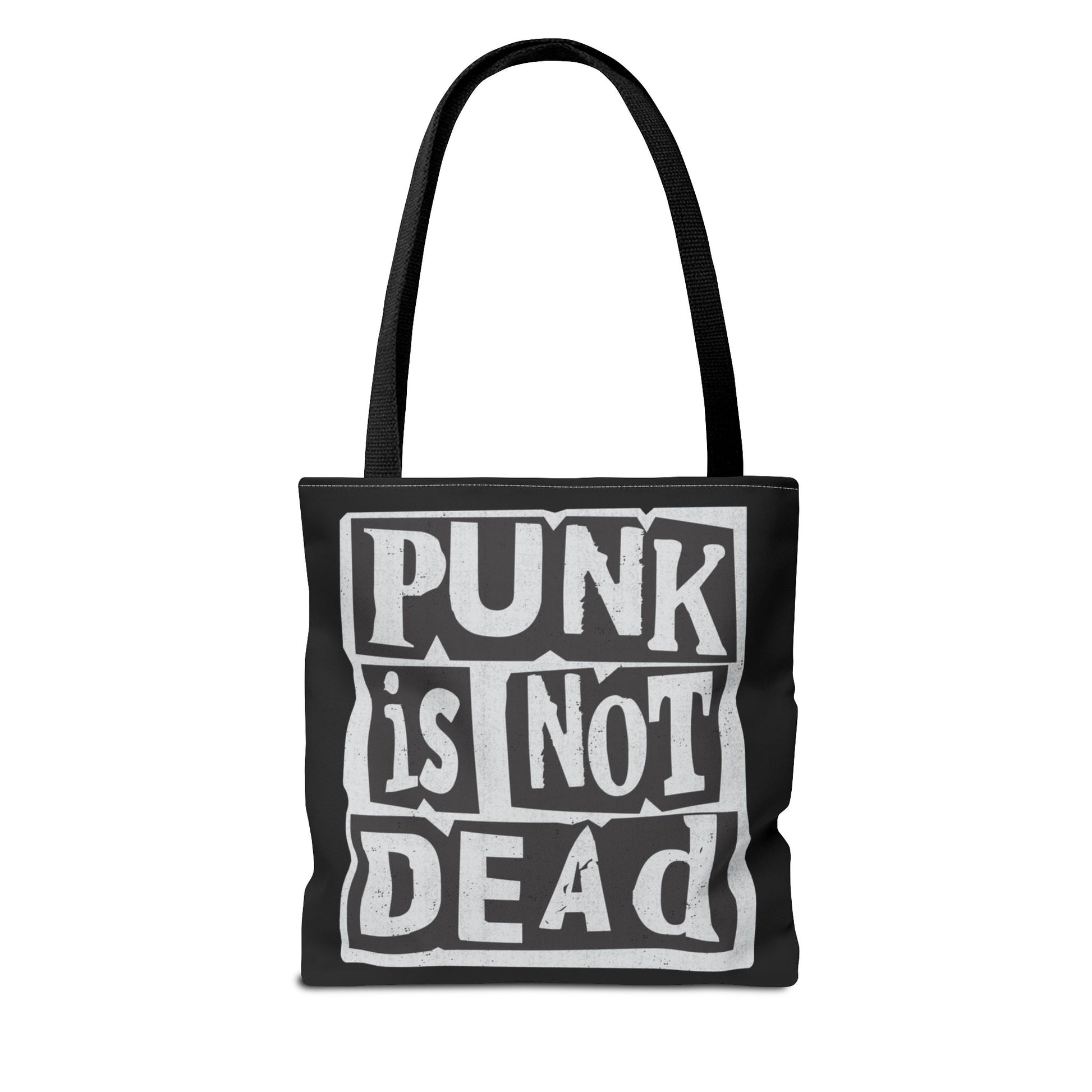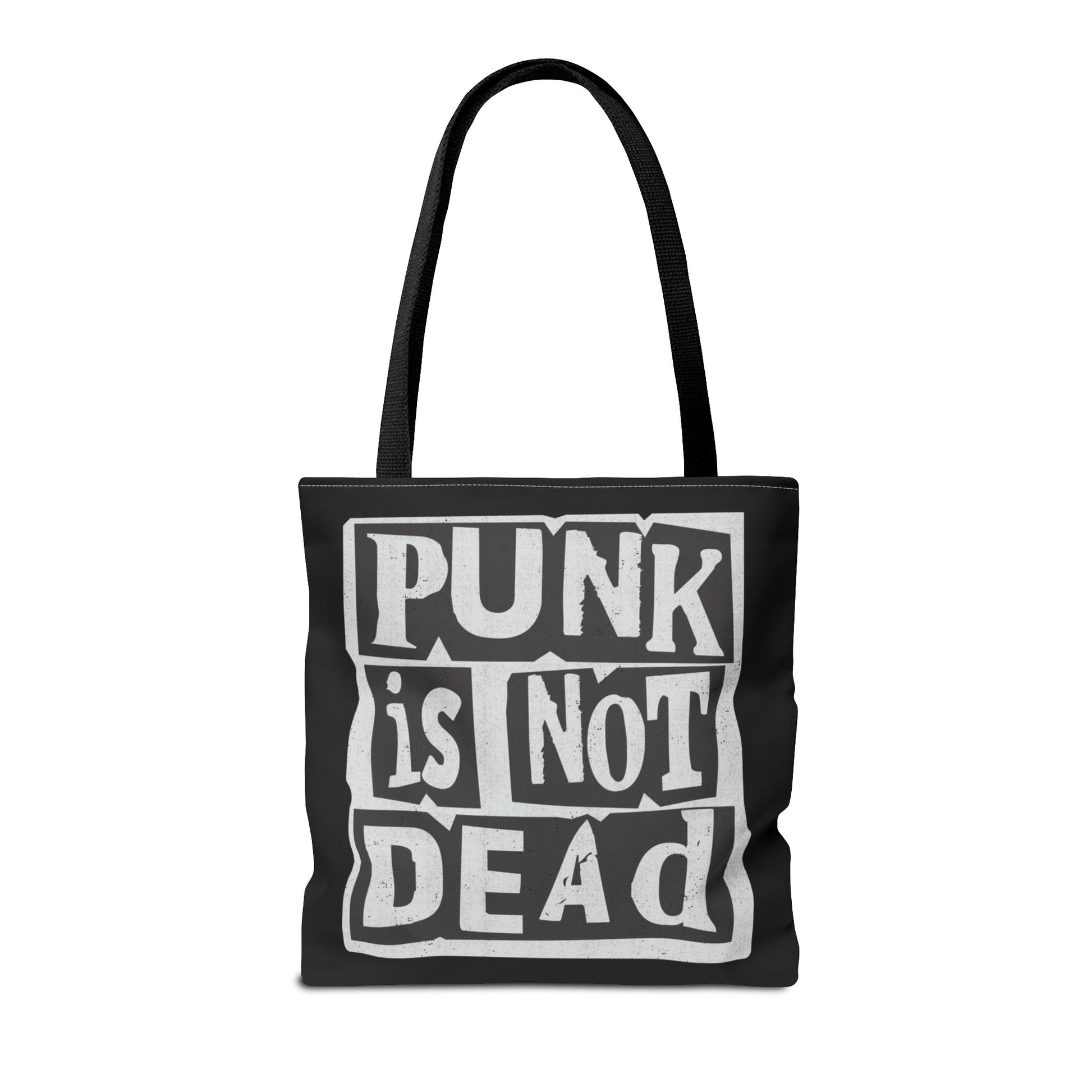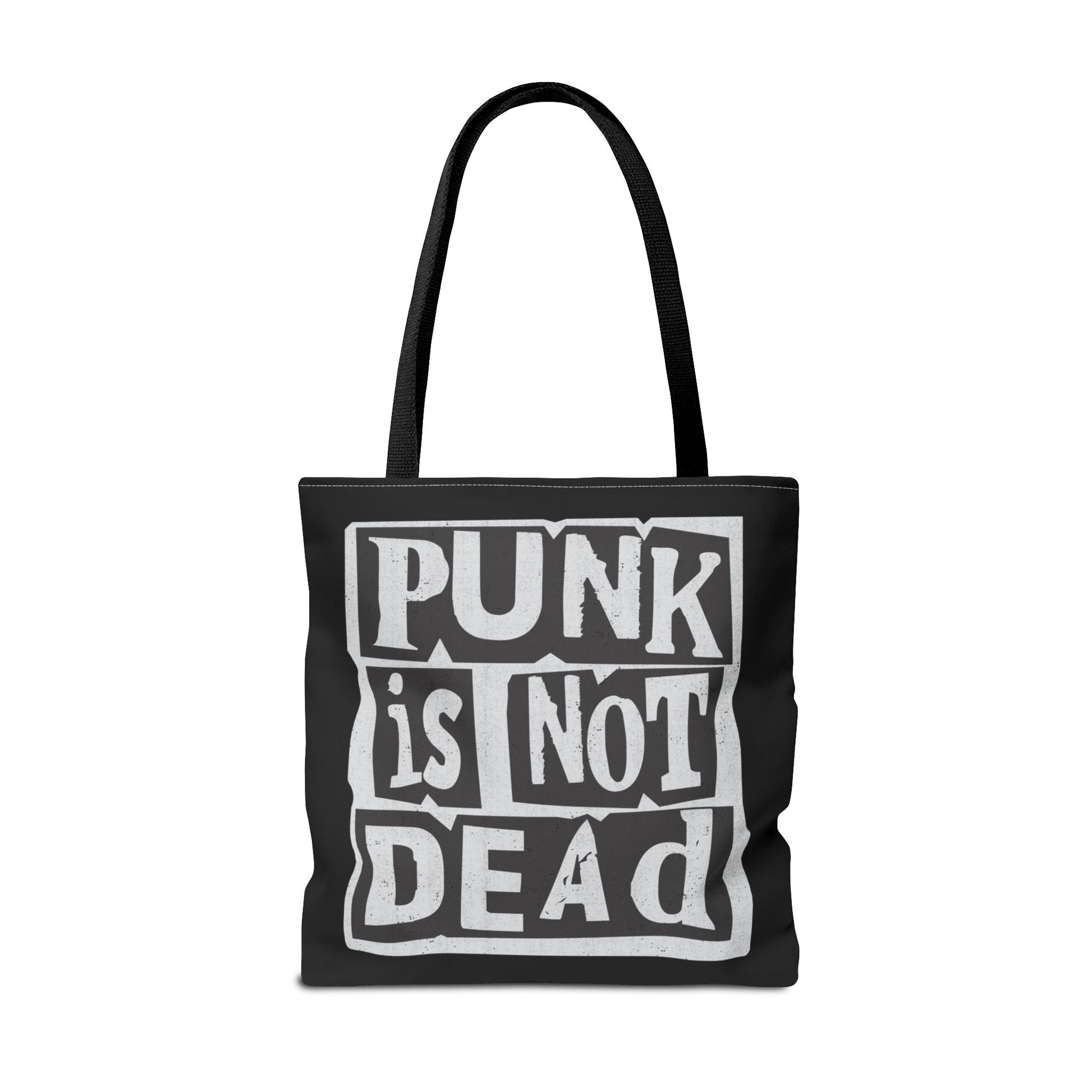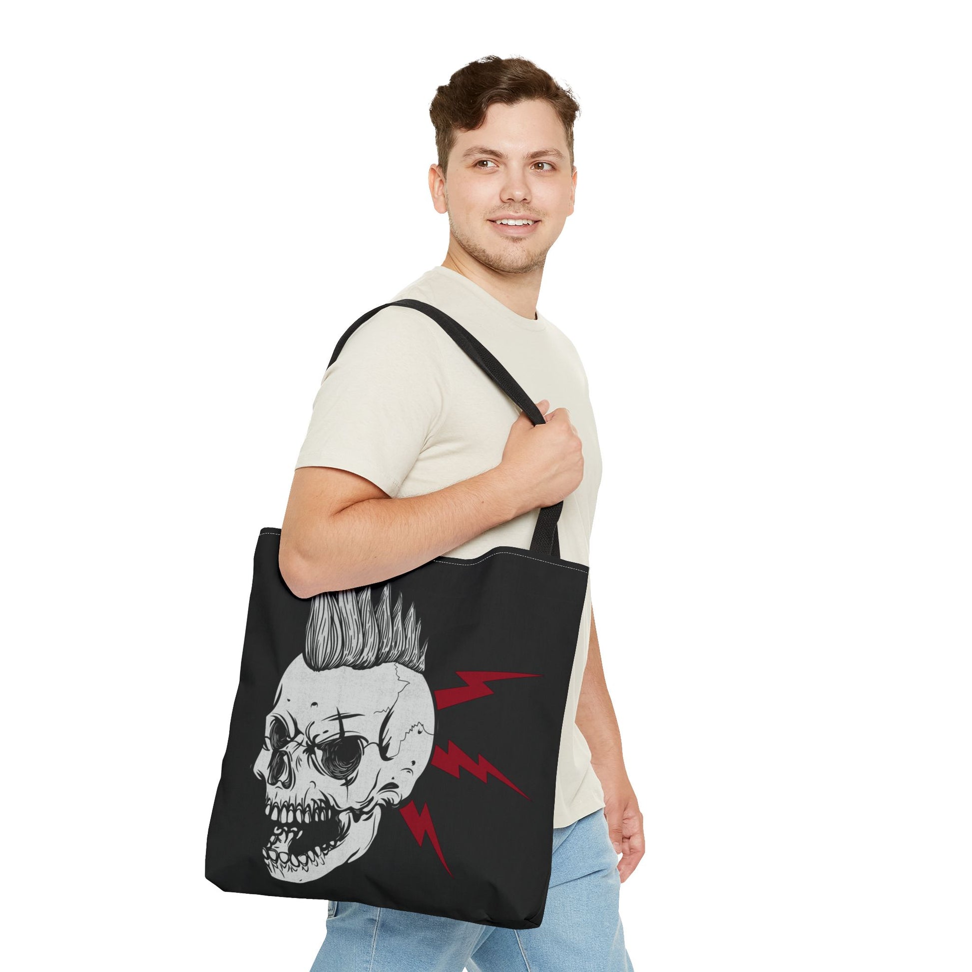 This Punk Is Not Dead Skull Mohawk Tote Bag is perfect for those with edgy and alternative style. It gives off a rebellious vibe and is ideal for carrying everyday essentials. This tote bag is relevant to punk rock fans, rebels, and those who appreciate unique and bold designs. Perfect for Halloween, concerts, festivals, and everyday use.