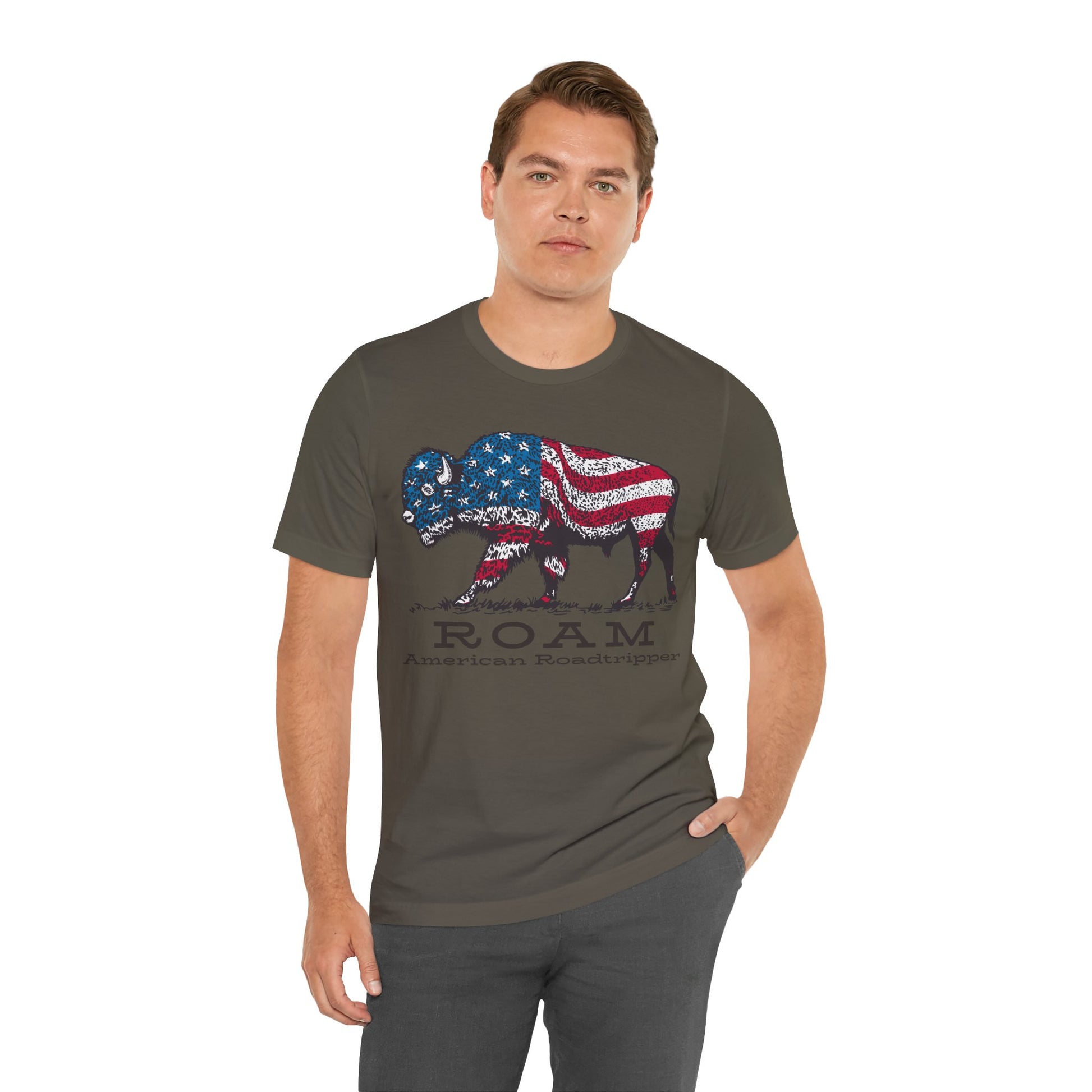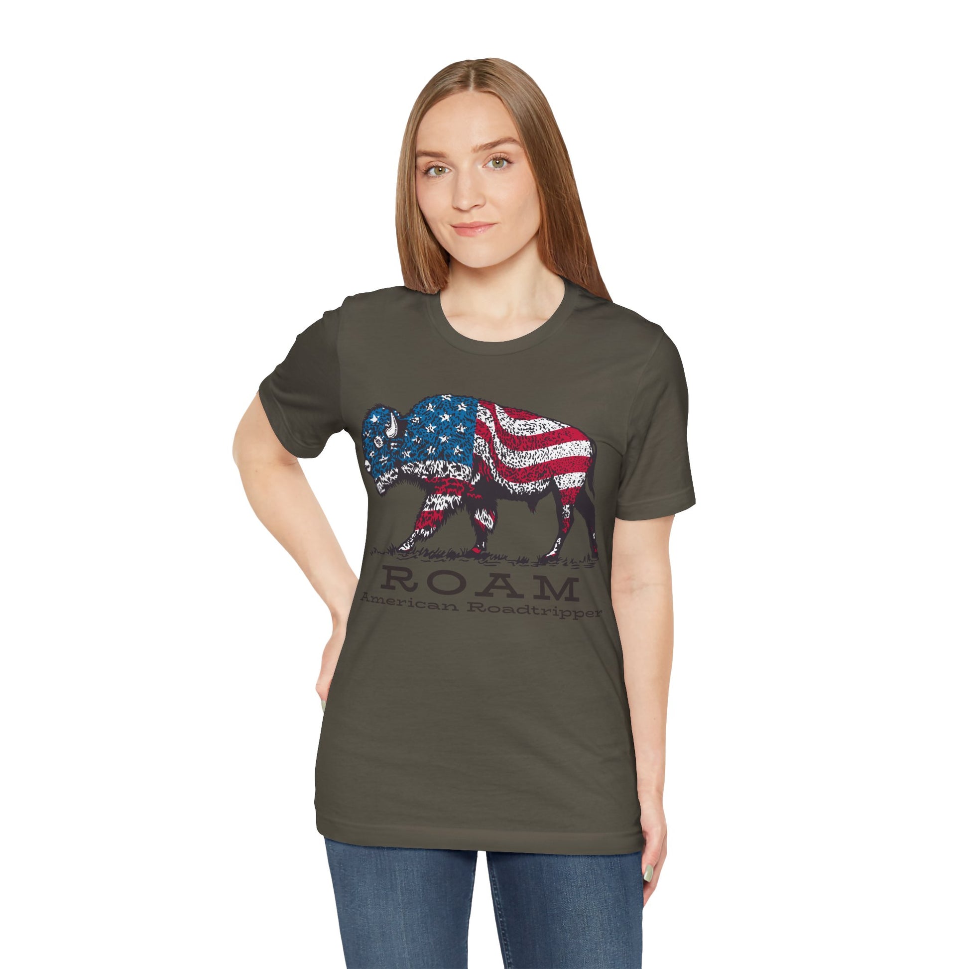 T-Shirt, American Roadtripper Roam, tshirt, USA, America, buffalo, graphic, quote, Travel, Roadtripping, Americana, Unisex Tee