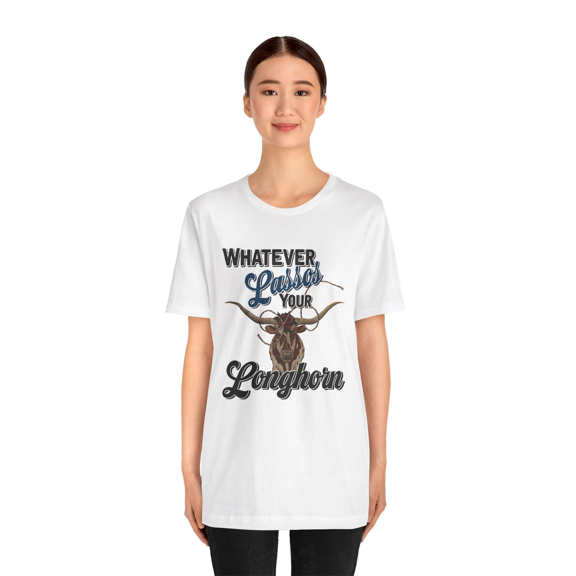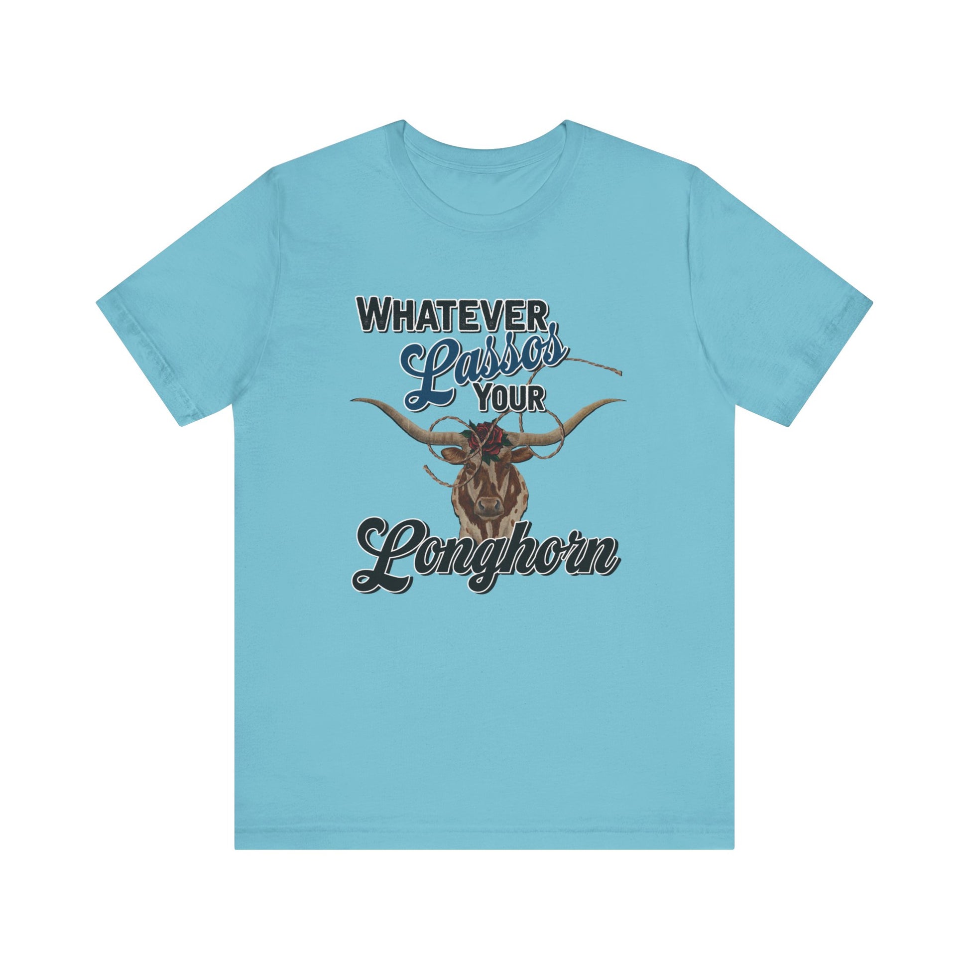 T-Shirt, Whatever Lassos Your Longhorn, Unisex tshirt, Funny, humor, graphic, quote, country, western, cowgirl, Tee